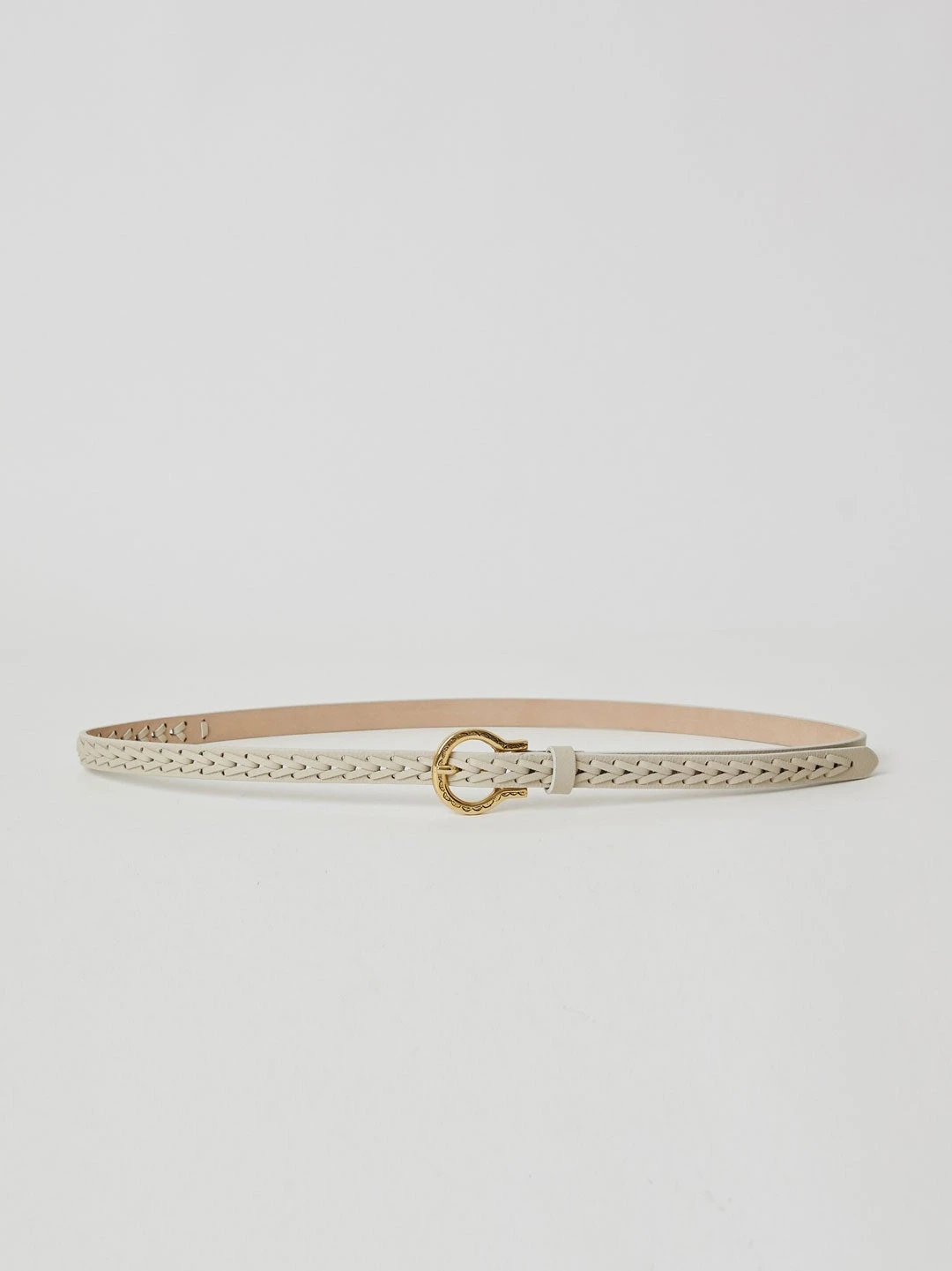The Amara is designed with beautiful hand-stitched leather detailing. Finished with an intricate Italian-made buckle, this skinny belt fastens through any point for personalized fit and function.