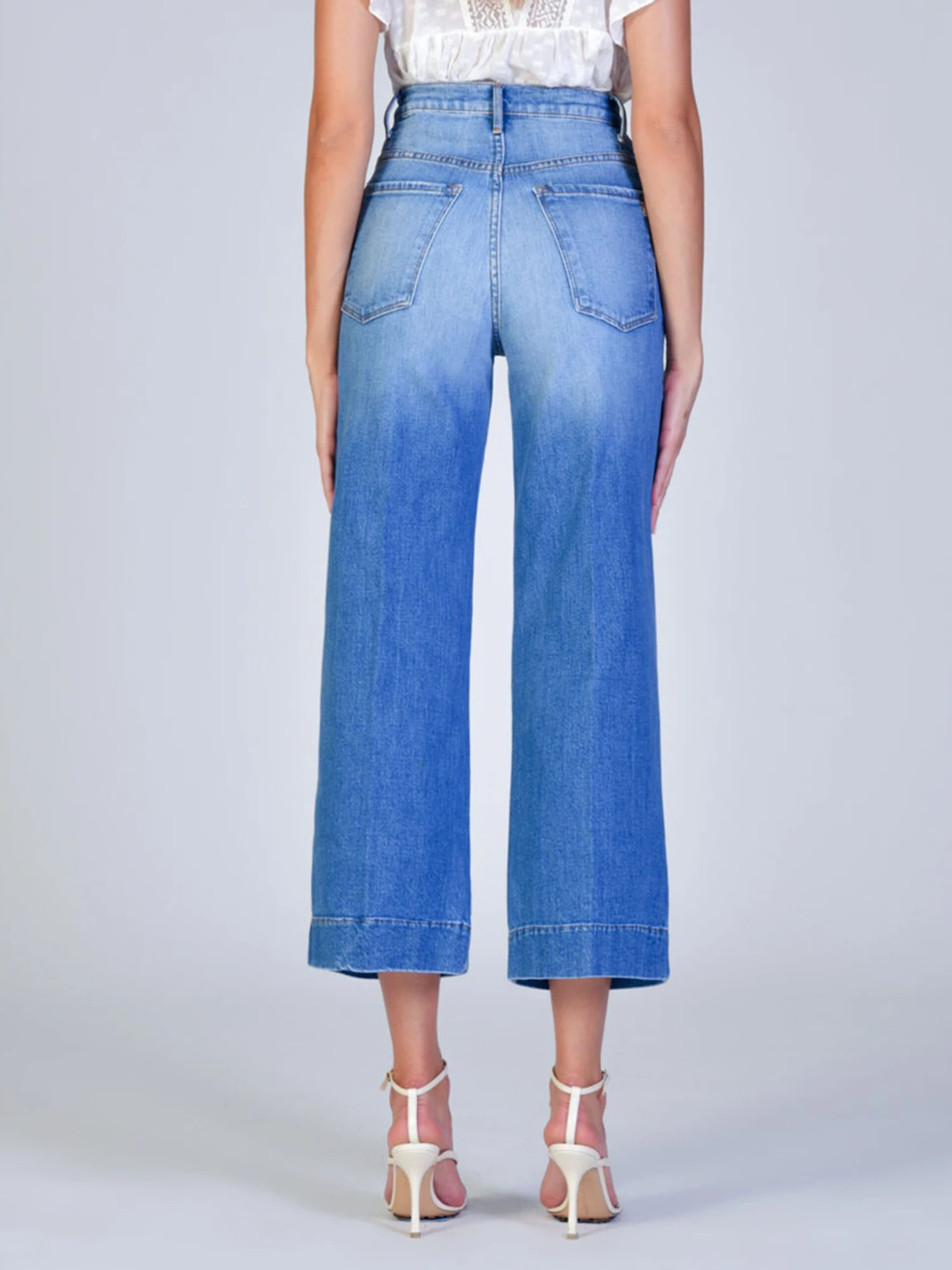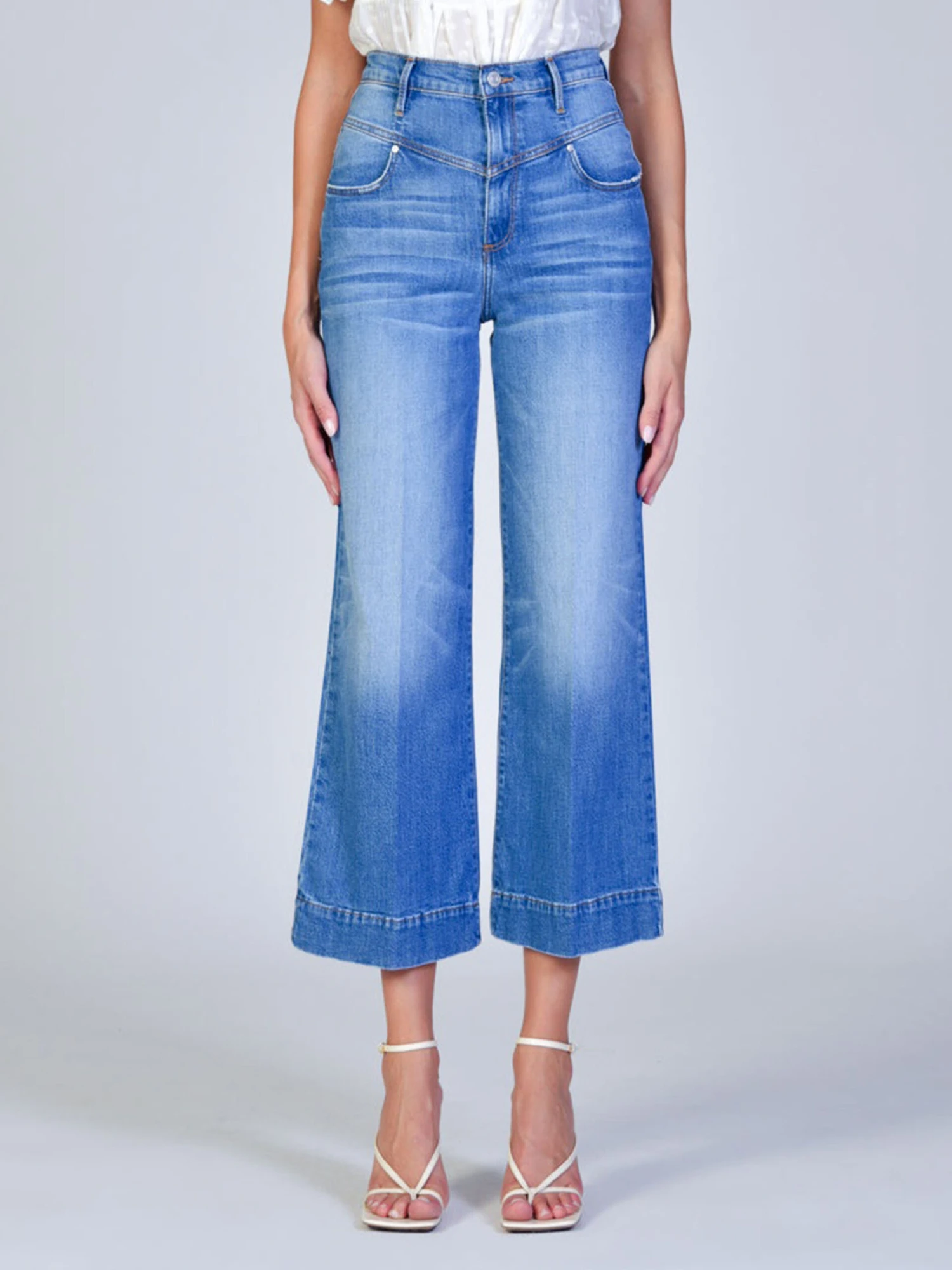Crop it like it’s hot. A high-rise wide-leg with a double yoke detail in a bright blue wash perfect for spring.