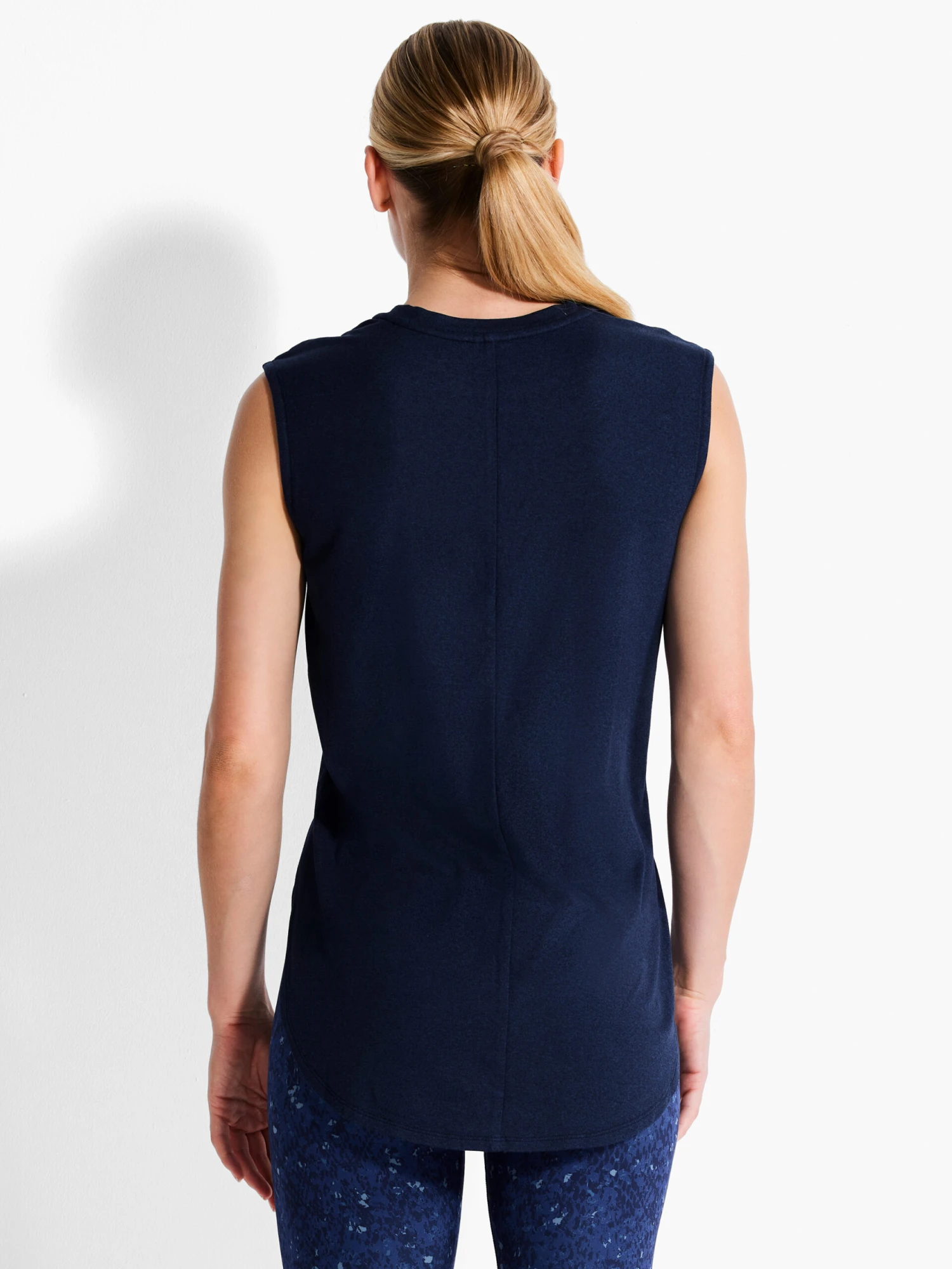Made from our unique, can’t stop touching it Brushed Flow fabric, this scoop neck tank is unlike anything else in your relaxed rotation. Featuring a midweight feel that provides the perfect balance between cozy and breathable, this round neck sleeveless silhouette is designed to have its shirt tail hem sit slightly below the waist. Cap sleeves add to the uniqueness of the shape.