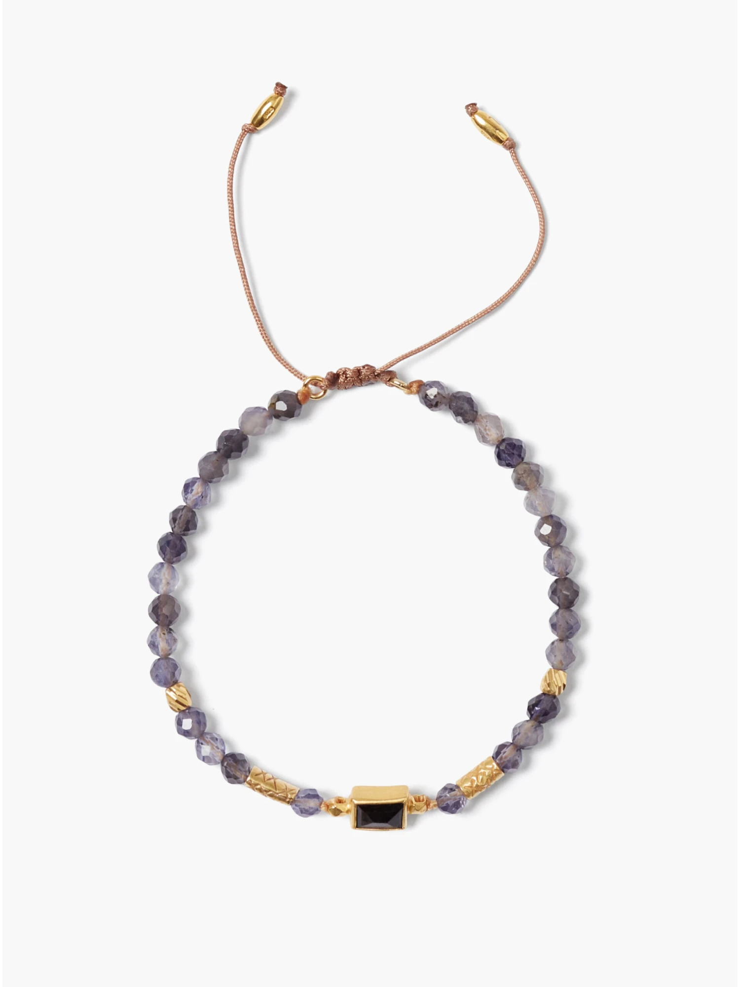 A simple silhouette you can build upon, this pull-tie bracelet features a row of rich iolite beads with a hypersthene pendant. Pairs perfectly with your favorite wraps and cuffs.