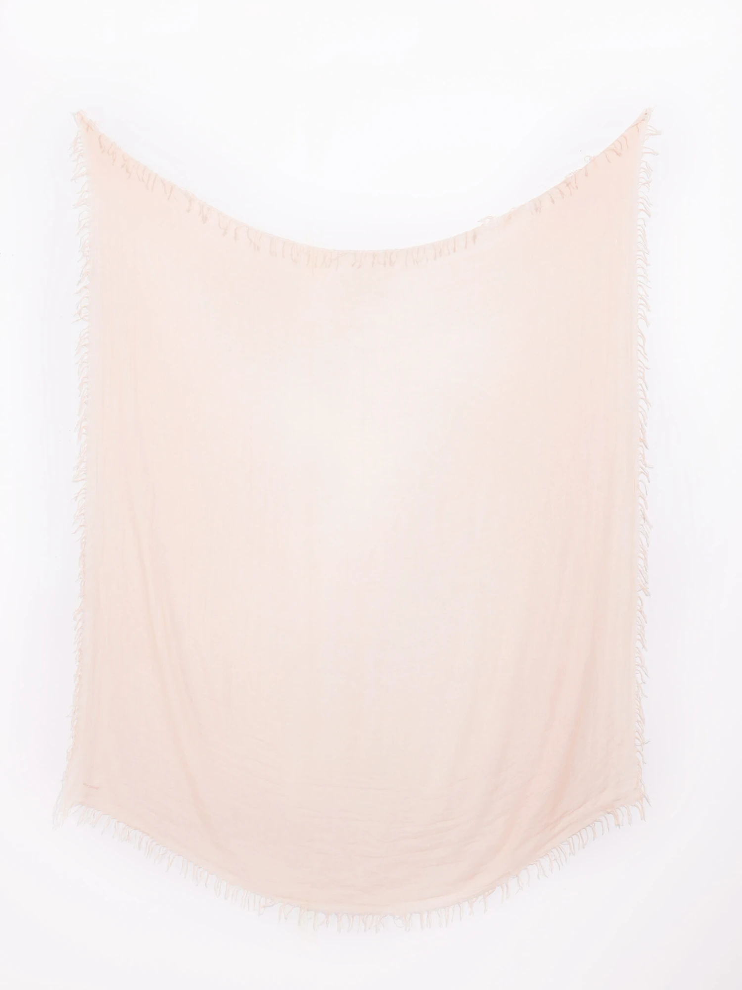 Feel like a celebrity with the luxurious mix of cashmere and silk adorning your neck. Lightweight and ethereal material is accentuated by fringe trim edges.