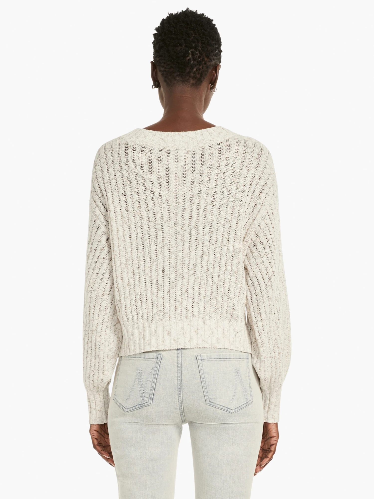 An artistically crafted textured sweater is sure to make its mark on any outfit. Featuring a unique cream slub yarn in a vertically textured stitch, this lightweight crew neck in our signature cotton blend proves that sweater season lasts all year. Designed for an easier fit with dropped shoulder bishop sleeves and a hem that sits at the hip. Mindfully Made with our “no waste knitwear” process.