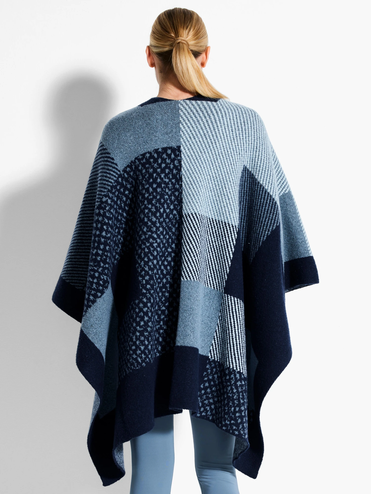 Cozy Reversible Jacquard Poncho AQUA MULTI
