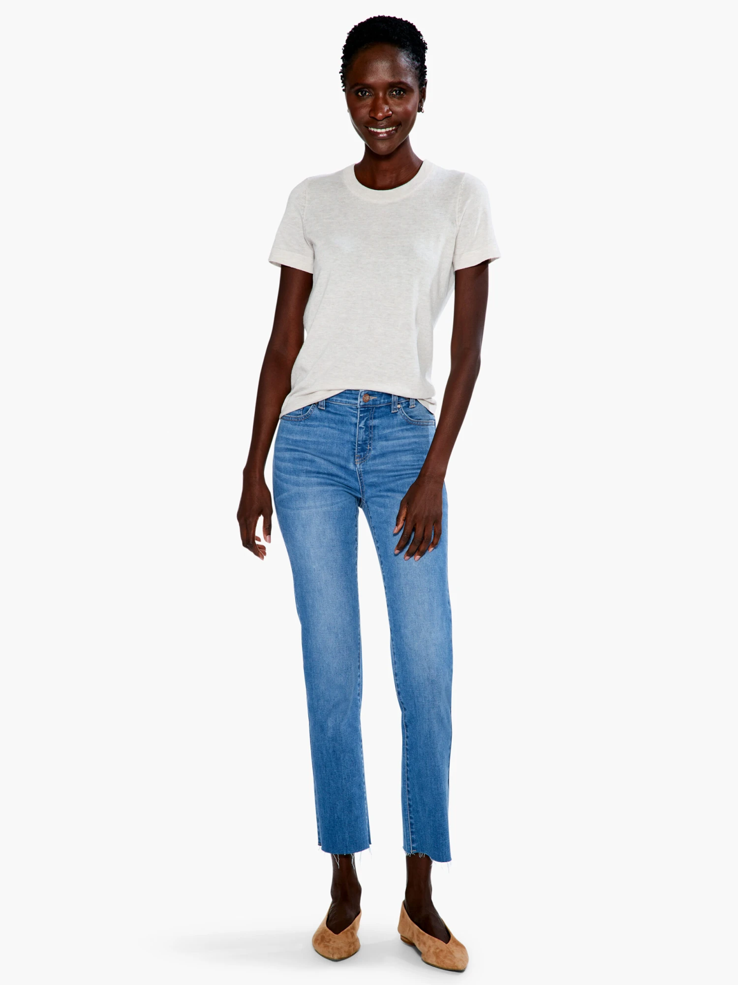 Half sweater, half tee, this lightweight knit top is the best of both worlds and ready for all four seasons. Soft as your coziest sweater but with unlimited layering and outfitting potential, we love its flowy feel and classic crew neck. The only tough decision? Picking your favorite color. Mindfully Made from fully fashioned knitwear, dramatically reducing textile waste.
