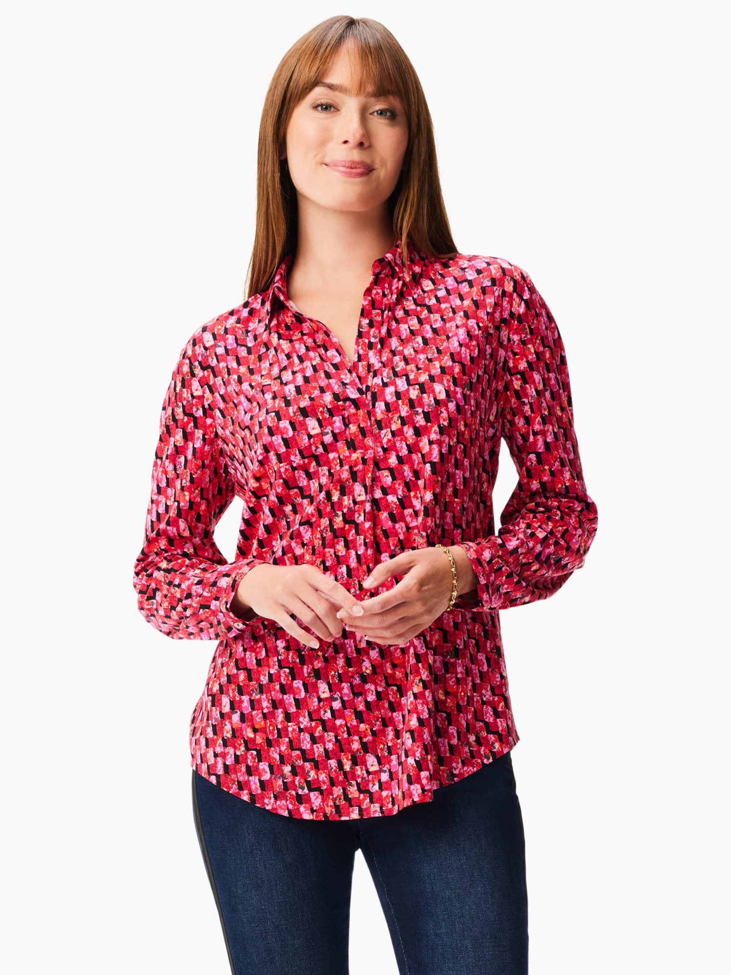 The party starts as soon as you put on this top. Whether you’re wearing it for holiday festivities or just adding some flair to your everyday fit, this relaxed fit button up is a wardrobe wonder and a simple way to turn heads with even your easiest looks. The feel is soft and drapey and the fit is slightly more relaxed. With a standard shirt collar that looks great layered under your favorite V-neck sweater.
