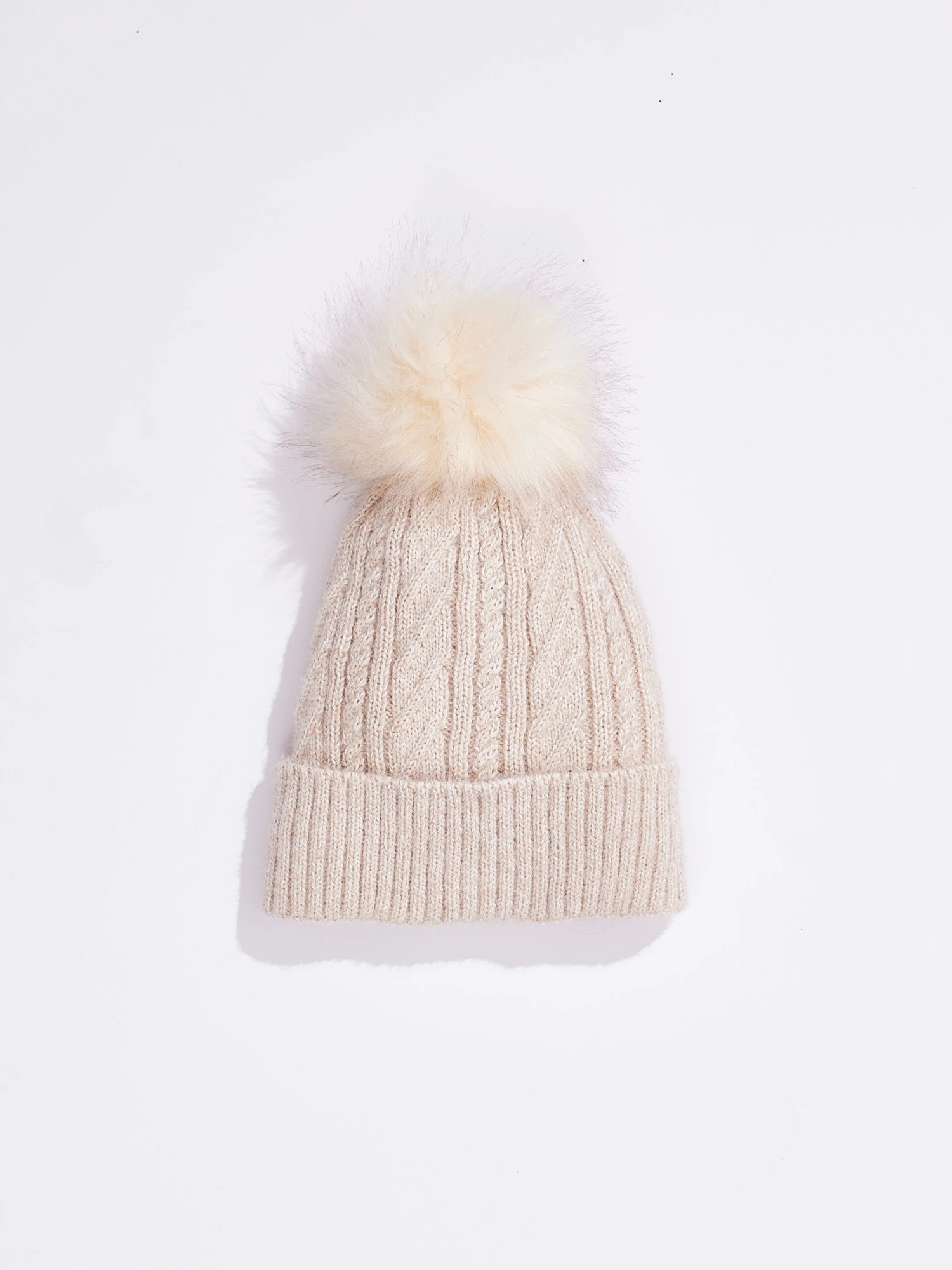 Our classic beanie in cable knit with a cozy lining and faux fur pom detail.
