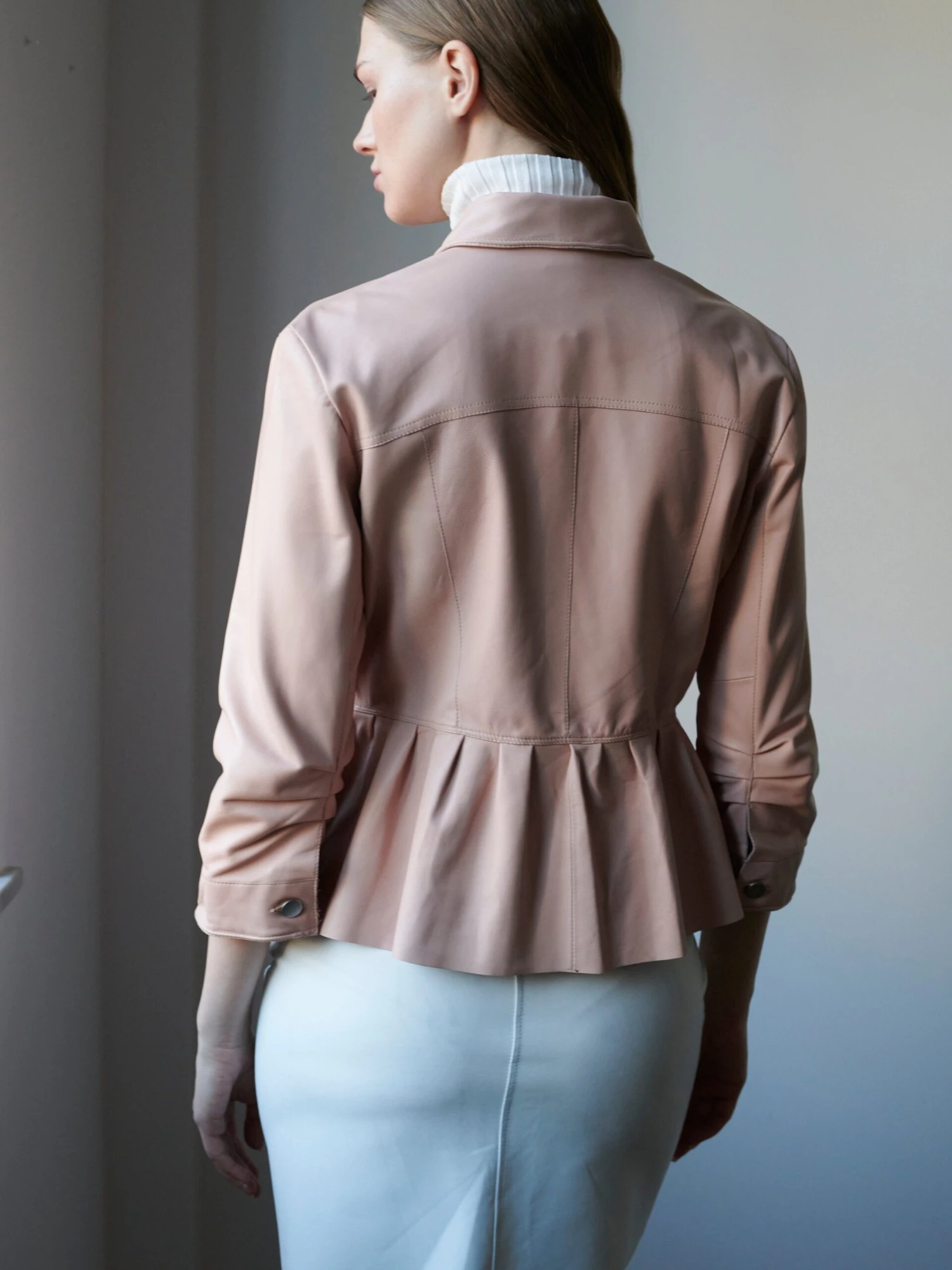 Be the first to review “JKT Brie Burnished Leather With Peplum Hem” Cancel reply