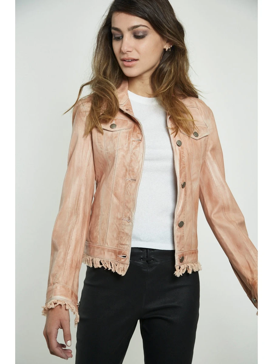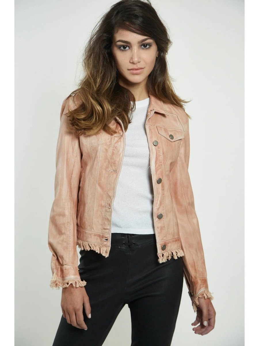 JKT NYC Alexa Patina Leather Jacket AU LAIT