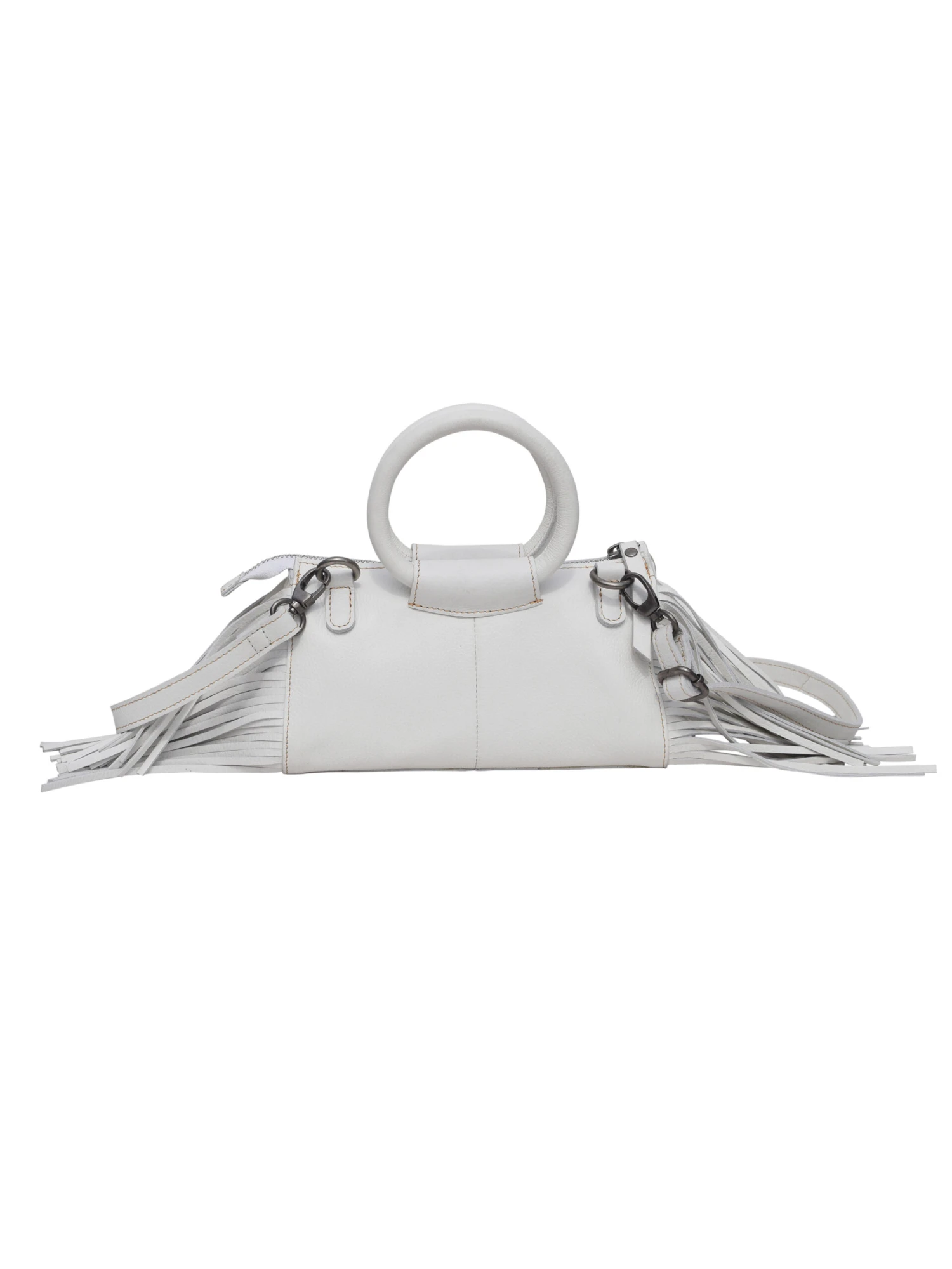 Equal parts functional and playful, we’re 100% obsessed with the style and convenience of this 100% leather mini bag. Goes with just about any outfit, whether you’re holding it from the top handles or the detachable crossbody/shoulder strap. Details include a zip-entry, side flap pocket with magnet snap closure, stylish round handles, and super-soft funky fringe.