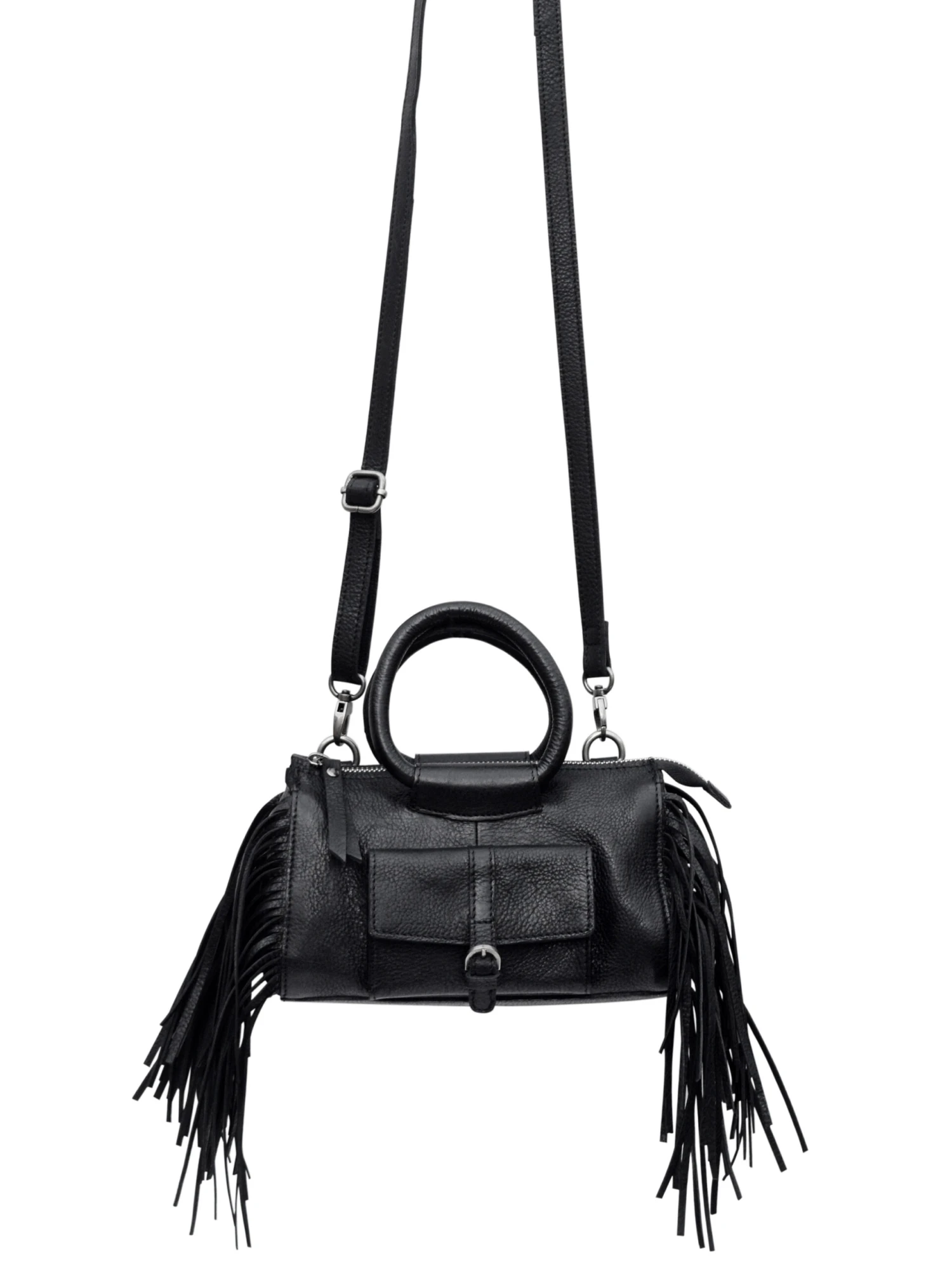 Equal parts functional and playful, we’re 100% obsessed with the style and convenience of this 100% leather mini bag. Goes with just about any outfit, whether you’re holding it from the top handles or the detachable crossbody/shoulder strap. Details include a zip-entry, side flap pocket with magnet snap closure, stylish round handles, and super-soft funky fringe.