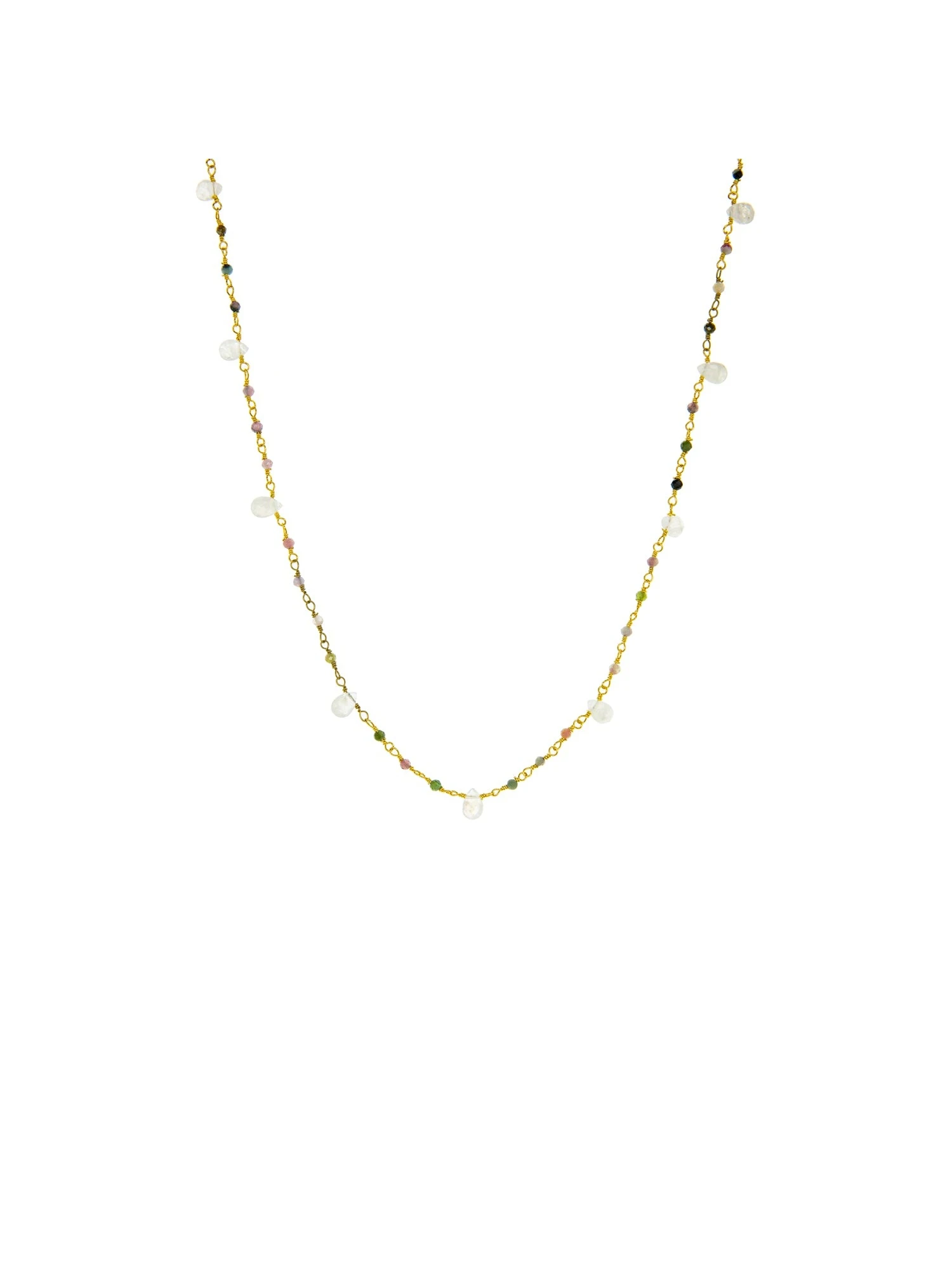 Add this gold plated natural stone beaded necklace to your look. Sleek, yet classic.