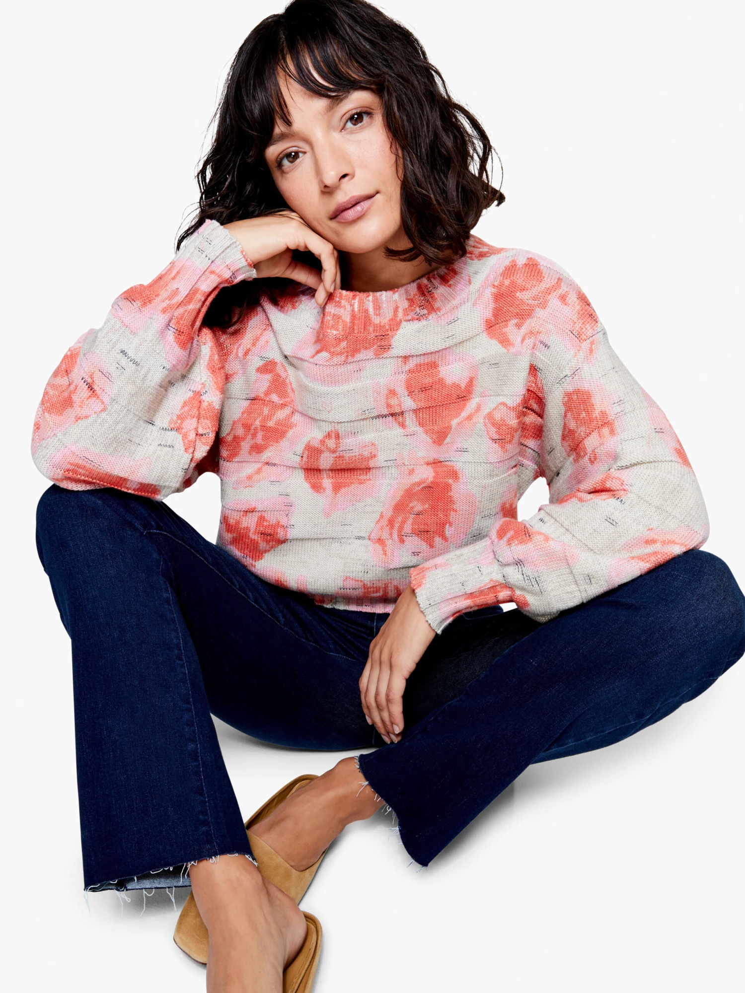 A knit print that evokes both sunsets and days in the garden, this comfortable pullover is full of hidden details that complement the bright design: bishop sleeves, a ribbed boatneck collar and comfy bracelet sleeves. In a midweight construction that’s designed to sit at the hip. Mindfully Made from knitwear that’s fully fashioned to reduce textile waste.