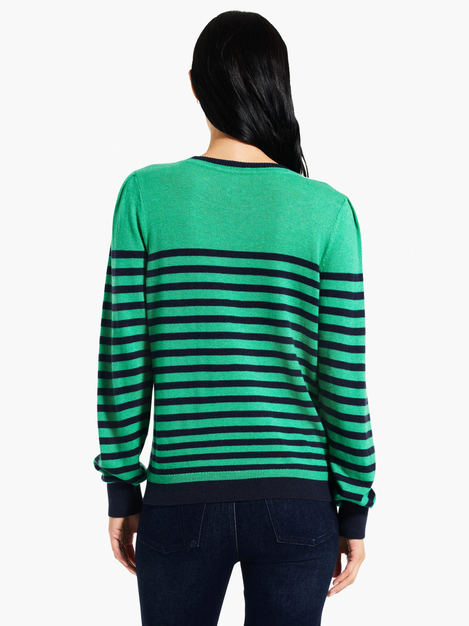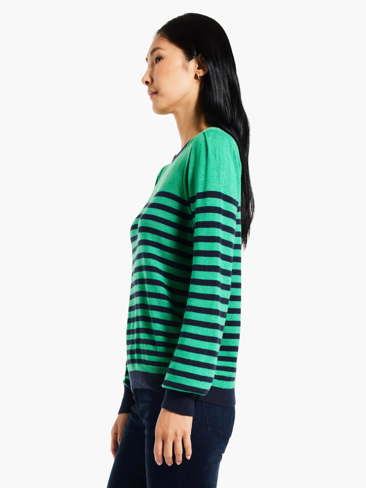 Our fan-favorite Femme Sleeve silhouette has officially arrived in patterns. The horizontal stripes (including the placed stripe at the collar) give it a versatile, eye-catching, and completely classic look. The silo is an easy pullover with a pleat detail at the top of the sleeve and a generous cuff to add even more shape. Mindfully Made with “no waste” knitwear.
