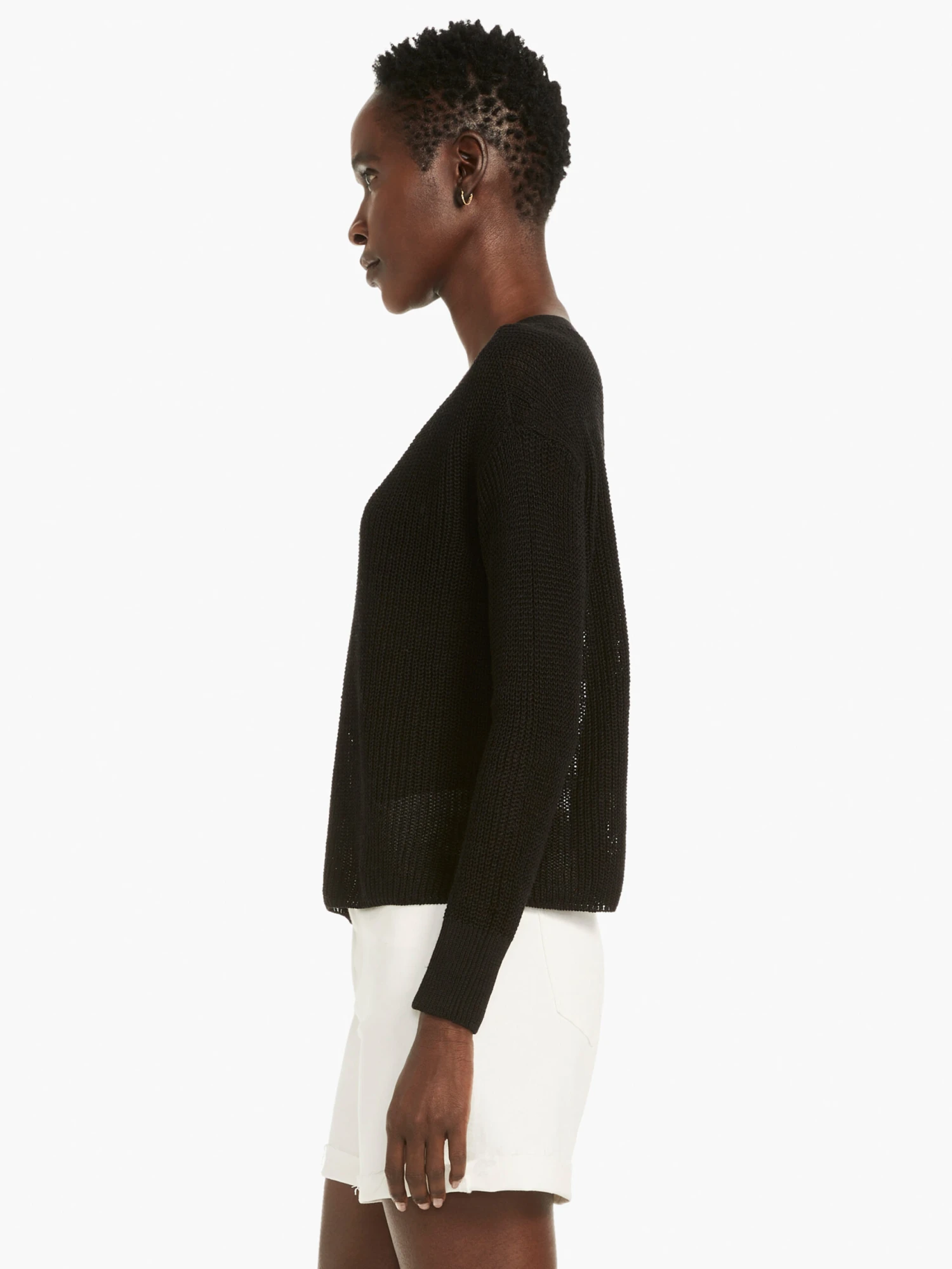When the material looks (and feels!) this good, a little goes a long way. With its on-trend short silhouette, this light and airy shaker knit stitch in our breathable linen cotton, modal, blend is a must-have modern knit. We gave it a lightweight pullover fit with a statement-making V-neck, dropped shoulder, and a relaxed fit. The absoulte perfect pairing with denim. Mindfully Made from our no waste knitwear.